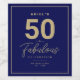 Simple blue & gold "50 and Fabulous" birthday party sign with classy and elegant typography. Customize it easily with age, name, party date and venue. Perfect for birthday gift or party favour.