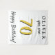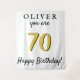 Simple 70th Happy Birthday Party Backdrop. Use the tapestry as a backdrop for the 70th birthday party. Personalize it with your name and age and any text.