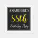This simple and elegant paper napkin design features a message like "ANameHere’s 88th Birthday Party", with the "88th" in fancy yellow-coloured text, within a black-coloured square area featuring a simple border outline. The name can be personalized. Napkins like these could perhaps be used at a birthday party for somebody who is celebrating their eighty eighth birthday. [~Z0000150]