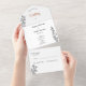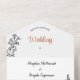 This All-In-One invitations is a unique and easy way to give out all the information needed to attend your wedding. All you have to d is fold the card at the perforated areas and seal the back flap with the three included clear stickers, and mail. All your guests have to do is tear off the bottom peace where the reply is located and drop it off in the mail to send it back to you. Your guests get to keep the top.