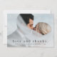 Une simple photo mariage photo carte de remerciement avec l'amour et de remerciement modifiable sur le devant. Le dos a un message personnel du couple. Cliquez sur le bouton Modifier pour customiser cette conception avec vos photos et détails.