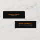 Skinny business card. Narrow, minimal and basic design of orange and light grey text (customizable to any colour you desire) on black background. Custom, simple and clean slender mini business card.