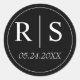 Make a statement of refined style with our "Simple and elegant black monogram wedding Classic Round Stickers." These classy round seal stickers offer a subtle yet impactful way to personalize your wedding. The design features a monogram, showcasing your initials and wedding date in a crisp, clean white against a timeless black backdrop, framed by a white border.