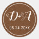 Simple and elegant initials brown wedding round envelope seal sticker. It coordinates with our "Yellow watercolor sunflowers" wedding invitation suite.