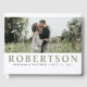 This photo guest book features your favourite photo on the front. Your last name is featured in a large all-caps sage green font with your first names and wedding date in black. "The wedding of (bride and groom's name) and date is listed on the spine. Text can all be customized to fit your needs.