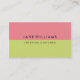 Modern and trendy business card in pink and green shade. This card is perfect for many professions especially creative professionals such as stylist, personal shopper, makeup artist, interior designer, baker and blogger. It is easy to customize: you can easily replace the placeholder text to add your own information. For more options such as changing the font and it's size or colour click the "Customize it" button. *Please note that the Zazzle Watermark that appears in the zoom preview will not appear on the final printed product © Rosewood and Citrus