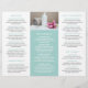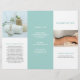 Brochure triplée élégante au design simple et moderne dans une couleur aqua clair / turquoise. L'intérieur comprend votre liste de prix / menu service. Ce design est parfait pour un spa de jour mais peut être modifié pour n'importe quel type d'entreprise.