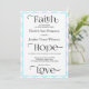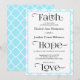 As adapted from 1 Corinthians 13, this simple Aquamarine Quatrefoil Black and White Faith, Hope, and Love contemporary Christian wedding invitation is an ideal choice for the modern Christian bride. See the entire suite of Christian invitation and accessory options at Zazzle store, Graphic Suite.