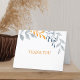 Simple thank you card with windswept autumn foliage in fall colours of orange grey and storm blue. Versatile design and perfect for halloween, october, harvest and thanksgiving occasions. The card is blank inside for your handwritten message (click "customize further" if you prefer to pre-print it).