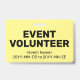 Cette conception de badge basique comporte le message "BÉNÉVOLE D'ÉVÉNEMENT". Un badge comme celui-ci pourrait peut-être être utilisé pour montrer que le porteur est un représentant officiel lors d'un événement. [~Z0000307]