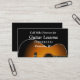 Guitar Lessons business cards, with black background and acoustic guitar on front.