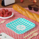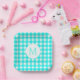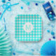 Make an impression with this classic chequered gingham pattern in bright turquoise blue with a white circular place to add your monogram in a matching turquoise block font! Replace the initial with your own...choose your font or remove the monogram and add your own design. Perfect for baby showers, weddings, anniversaries, reunions and luncheons.