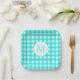 Simple Basic Turquoise Gingham Monogram Paper Plate