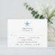 This beach wedding rsvp cards features a watercolor starfish in shades of blue. Use the template fields to customize your meal choices. The card reverses to a navy blue colour. A charming choice for seaside destination weddings or nautical boat weddings.