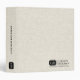 Sleek and modern financial consulting professional binder design featuring a custom monogram on a sophisticated black square, paired with custom text in elegant black tones. The design is further elevated with a subtle light beige linen texture image background for a touch of sophistication.