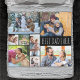 Recognize your father as the BEST DAD EVER (or your title) with this custom colour photo memory keepsake blanket. The design features an easy-to-upload photo collage template with 8 pictures in various shapes and sizes, both horizontal and vertical to accommodate a wide variety of photo subjects in your choice of text and background colours (shown in white on black). BLANKET OPTIONS: The sample is shown in the MEDIUM 50x60" Fleece blanket--other sizes are available on the ordering page or you can transfer to a Sherpa blanket, throw blanket or another product. ASSISTANCE: For help with design modification or personalization, colour change or transferring the design to another product, contact the designer BEFORE ORDERING via the Zazzle Chat MESSAGE tab below or email makeitaboutyoustore@gmail.com.