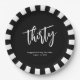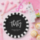 It's time to party to celebrate a 30th birthday bash with this modern and bold birthday party plate. This simple stylish design has a popular black background with white handwritten script accents blended with a modern sans serif font. The plate is bordered in a coordinating black and white stripes pattern. Personalize the text template with your guest of honour's name and date. These plates are available in 9-inch diameter and 7-inch diameter. Shown here in the 9-inch style.