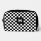 Simple Black and White Chequered Pattern Monogram Dopp Kit