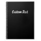 This black notebook has display text in a white script. The text can be edited or deleted.