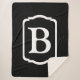This blanket has an initial that you can change to show the correct monogram. A white letter is in on a black background with a white frame border.