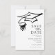 Announce your graduation celebration with this simple and elegant black and white save the date card. Featuring a hand-drawn graduation cap with tassel, this design brings a modern and artistic touch while keeping a clean and timeless look. The minimal layout and classic typography make it easy to read and visually appealing.