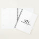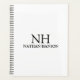 Modern business planner featuring a simple and minimal black and white design with your monogram in a bold font along with your name on the front. The back has your contact info.