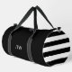Simple Black and White Monogram Stripes Pattern Duffle Bag