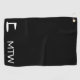 This black golf towel has white text. You can change the text to show the correct monogram. A golf flag image is next to the initials.