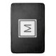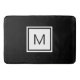 A black letter is on a white that is surrounded by a white and black double border. This black and white bath mat can be personalized with your monogram/initial.