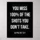 Elevate any space with our motivational poster featuring the iconic quote, "You miss 100% of the shots you don’t take," by Wayne Gretzky. Set against a sleek black background with striking white text, this poster serves as a daily reminder to seize opportunities. Perfect as a graduation gift, it inspires new beginnings and encourages a bold step forward. Ideal for home, office, or dorm, this piece not only decorates but also motivates. Discover the power of quotes to transform your mindset today!