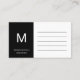 Vous avez besoin de laisser une note pour un ami, ou vous voulez donner votre numéro de portable à un nouveau contact? Utilisez cette simple carte de contact en monogramme noir et blanc avec un endroit pour votre nom et votre téléphone mobile ou d'autres informations de contact. Le dos est vide pour plus d'espace d'écriture. Cette carte peut être personnalisée en choisissant la couleur qui convient le mieux à votre personnalité.