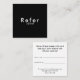 Elegant simple black and white referral card. Perfect for a wide range of professions including; hair and beauty consultants, stylists, makeup artists, beauticians, hairstylists, spas and beauty treatments and personal trainers to name a few! Personalize by adding your contact details on the reverse with your special customer discount offer in modern typography. Designed by Thisisnotme©
