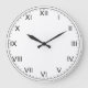 This is a clean and elegant wall clock, white background with black numbers of a simple Roman Numeral style. The perfect clock for people who like the 'uncluttered look' and a clock that shows the time clearly.
