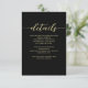 Simple and elegant black and white minimalist wedding guest detail with beautiful calligraphy script, and gold colour typography.