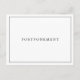 Simple wedding postponement announcement postcard featuring a modern yet elegant design "Postponed" inside of a black border over a white background. The backside has your two letter monogram and your details in a serif font. A chic and stylish design that is great for a minimalist couple. These announcement postcards are a great way to inform guests that your wedding has been postponed.