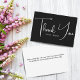 Express your gratitude in style with the Simple Black and White Wedding Thank You Card. Featuring a sleek black background with elegant white modern calligraphy, this card offers a timeless, minimalist design. The front includes customizable space for the bride and groom's names, while the back provides a dedicated area for a heartfelt thank you message. Perfect for couples seeking a chic and sophisticated way to show appreciation, these cards blend simplicity with elegance for a truly memorable touch.