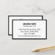This simple business card is double-sided. Both sides have an elegant black border. Side one has lines of display text for your name, address, phone number, and email address. Side two has a display image you can replace with your logo or a QR code. All text can be edited or deleted. The text is black.