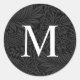 Simple Black Floral White Monogram Envelope Seal. White serif font set on a black William Morris Floral Textile Pattern.