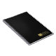 Whimsical, minimalistic law office design with a custom monogram on a gold square and custom text in gold tones. Black leather texture image background.