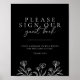 Simple Black Modern Floral Wedding Guest Book Sign