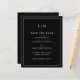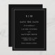 Simple black budget save the date featuring a modern yet elegant design with your two letter monogram at the top and your wedding details surrounded by a thin border. A chic and stylish design that is great for a minimalist couple.