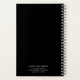 Simple black business notebook featuring a modern yet elegant design with your two letter monogram surrounded by a border. The backside has your contact information. This personalized notebook in a minimalist style is great for any type of business.