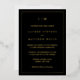 Simple black and gold Wedding Invitation featuring a modern yet elegant design with your two letter monogram at the top and your details surrounded by a thin border. This design is printed with real gold foil. This minimalist style Wedding Invitation is great for a dark and moody themed wedding.