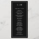 Modern Wedding Program featuring a simple yet elegant design with a traditional layout. Your two letter monogram is at the top along with your details surrounded by a thin border. All design elements are white over a black background and may be changed in the design editing tool. A minimalist design with a classic feel that is great for a formal wedding.