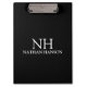 Modern business clipboard featuring a simple and minimal black design with your monogram in a bold font along with your name.