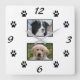 Simple Black Paw Print Pet 2 Photo Collage Square Wall Clock