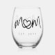 Simple Black Script Heart Mother Mom Established Stemless Wine Glass