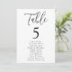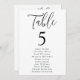 Modern wedding seating chart featuring "Table" displayed in a black script with the table number and guest names shown below on a white background. The design repeats on the back. To order the table number seating chart, edit each card with the table number and guest names and add it to your cart. Designed to coordinate with our Simple Script wedding collection.