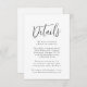 Modern wedding details cards featuring your wedding details displayed in black lettering with a white background. Add details such as hotel accommodations, welcome reception information, wedding website, etc. Designed to coordinate with our Simple Script wedding collection.