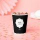This custom black & white paper cup features a simple logo and text area with cute heart. Add your logo and customize the text with your information. You can use this personalized cup at your business place, shops, company event or, etc.